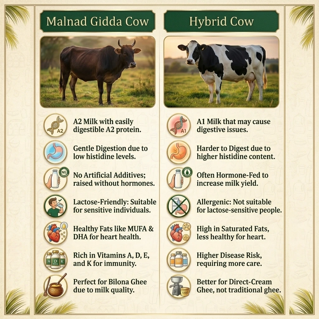 Discover the unparalleled richness of Malnad Gidda cow milk and ghee, a true gift from nature, steeped in ancient wisdom and modern science.